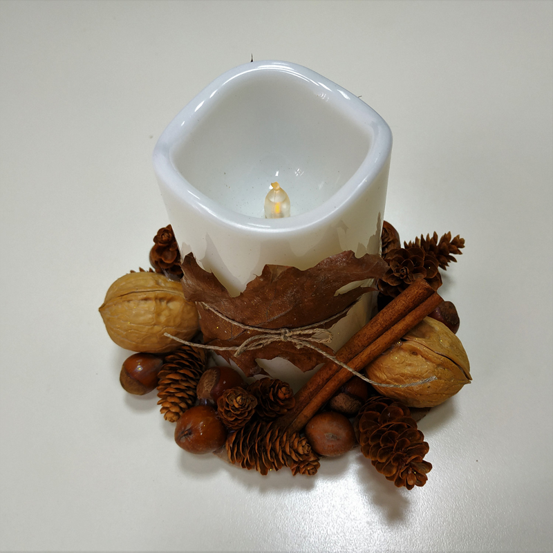 Осень – пора уютных домашних вечеров, так почему бы не провести один из них, создавая нужную атмосферу своими руками. Подсвечник, украшенный натуральными материалами, станет отличным подарком вам и вашим близким.