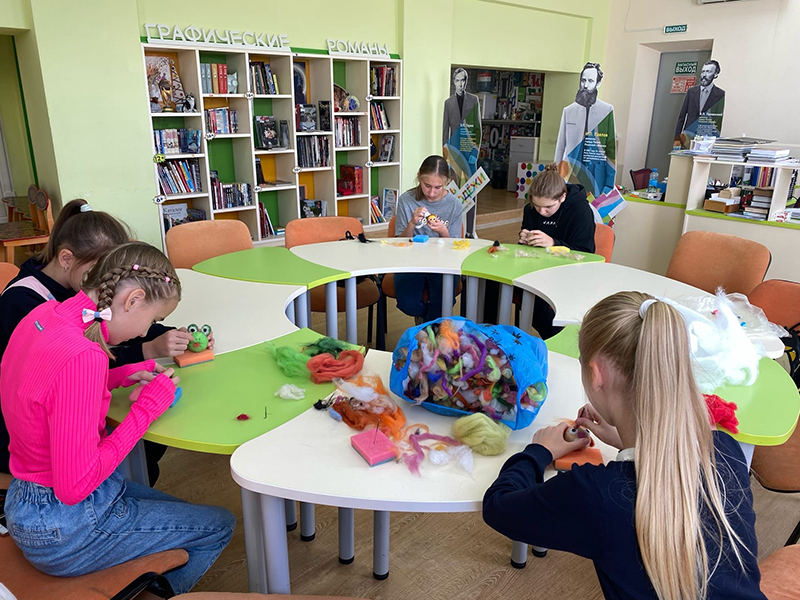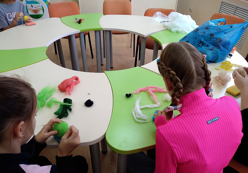 В библиотеке им. Горького прошел очередной мастер-класс по валянию из шерсти от педагога, директора творческой студии «Шмель» Юлии Незаленовой. На занятии преподаватель предложила ребятам придумать сказочного героя и сделать его из шерсти. Юлия показала юным участникам технику сухого валяния и помогла воплотить их идеи. В итоге, каждый из ребят забрал домой яркую и оригинальную поделку, сделанную своими руками.