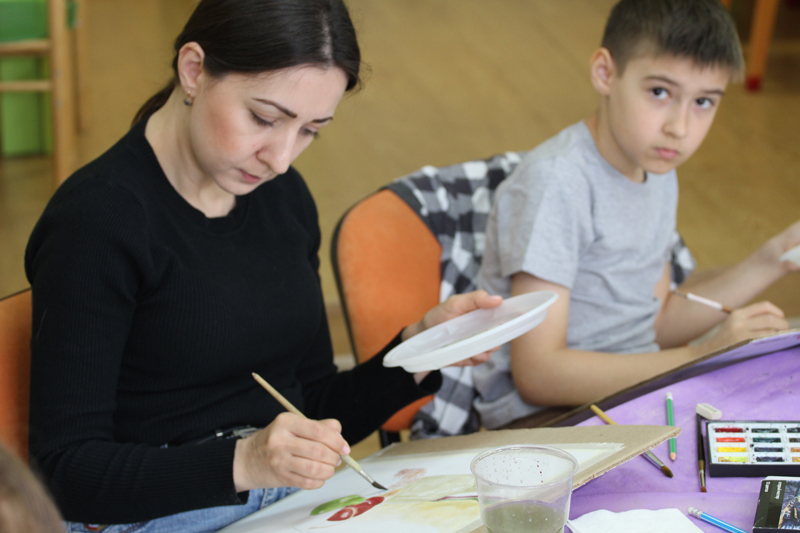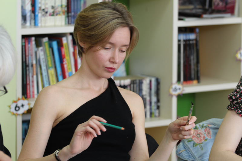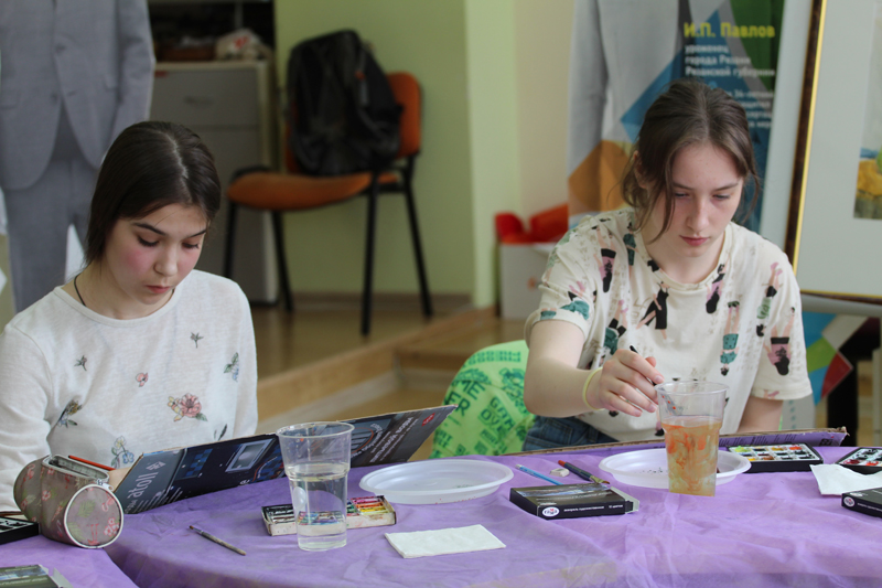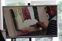 На занятии было задействовано видеооборудование, которое транслировало все действия художника на экран. Каждый участник в любой момент мог наблюдать за работой преподавателя.