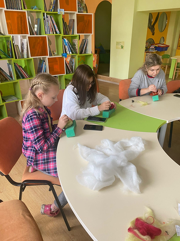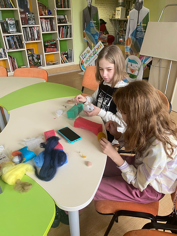 В библиотеке им. Горького прошел очередной мастер-класс по валянию из шерсти, который провела директор-преподаватель студии «Шмель» Юлия Алишеровна Незаленова. Ребята вместе с Юлией придумывали ярких персонажей и создавали их из шерсти в технике сухого валяния.