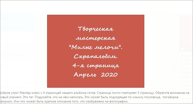 Участникам творческой мастерской «Милые мелочи» был продемонстрирован видеоролик с подробной инструкцией четвертой страницы будущего фотоальбома. На этот раз юные рукодельницы познакомились с новым термином в скрапбукинге. Слово «тег» в этом виде рукоделия означает элемент, похожий на ярлычок или бирку, который может быть вспомогательным украшением или служить самостоятельным декоративным элементом.