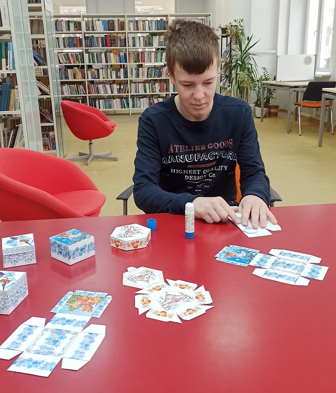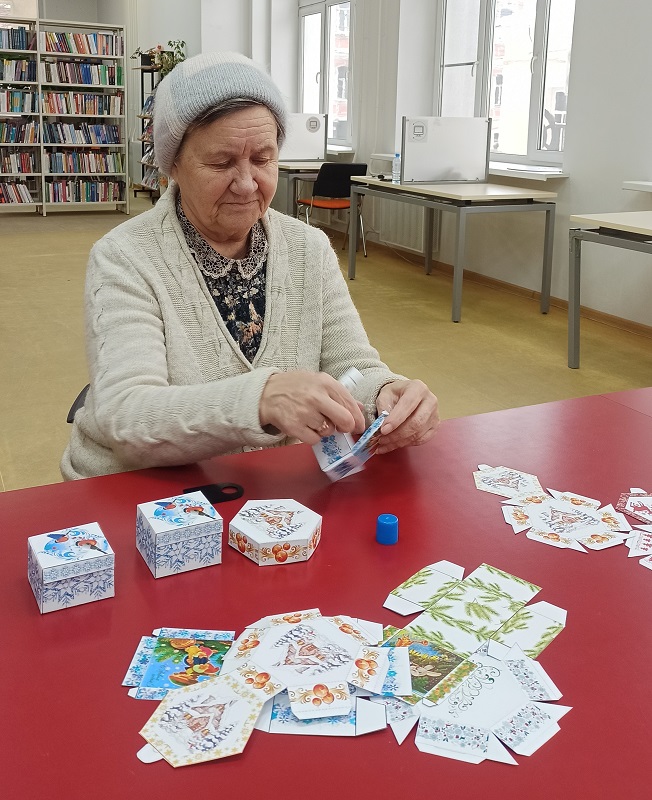 В центре книги и чтения состоялся увлекательный мастер-класс по изготовлению новогодних шкатулок из бумаги. Мероприятие собрало участников разных возрастов – от юных рукодельников до опытных мастеров и превратилось в праздник творчества.