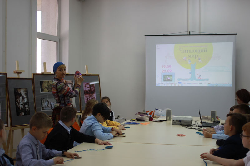 Детский мастер-класс по круговому ткачеству привлек юных участников своей креативностью и самобытностью. Лучшими ткачами во все времена были мужчины. И наши мальчики доказали это. Наравне с девочками терпеливо и тщательно они плели круговые элементы, шнуры и модные фенечки. Татьяна Александровна подарила самым активным участникам свою книгу «Рукотворные чудеса».