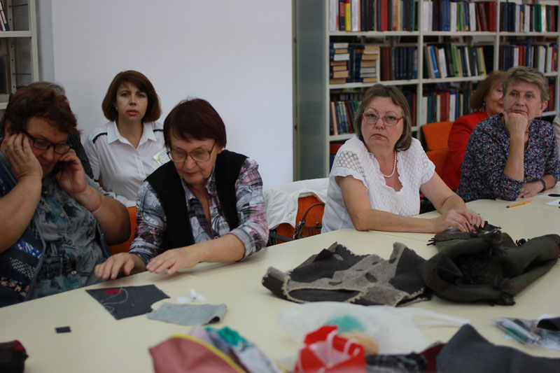 Второй мастер-класс собрал взрослую аудиторию. Тема декорирования драповых тканей особенно актуальна в преддверии наступающих холодов. Татьяна Лазарева поделилась секретами создания бесшовных корсетов, сюртуков и шляпок. Студенты Рязанского технологического колледжа, мастерицы клуба «Волшебный лоскуток», активисты областного Совета женщин, читатели библиотеки узнали много нового и интересного на удивительном мастер-классе под названием «Драповые фантазии». В знак благодарности Татьяне Лазаревой подарили рукодельный сувенир-символ Рязанского края – гриб с глазами.