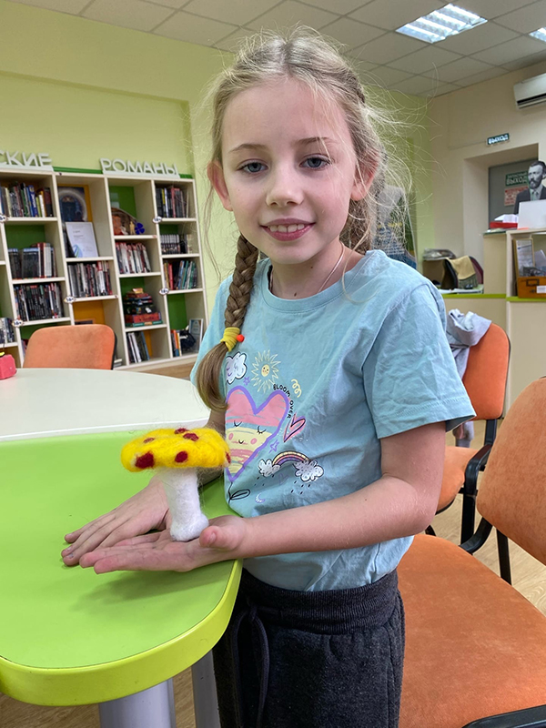 Ребята самостоятельно изготовили игрушки: различных зверей, разных по цвету и форме, а у кого-то пришла идея сделать гриб мухомор. Преподаватель помогала ребятам, показывала, как сделать поделку наиболее красивой. Итогом занятий стали яркие авторские игрушки из валяной шерсти.