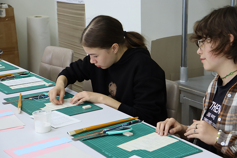 Мастерству реставрации обучались старшеклассники и студенты Рязанского художественного училища имени Г.К. Вагнера. Профессиональные художники-реставраторы познакомили участников с материалами, используемыми для восстановления книг, рассказали о типичных повреждениях переплетов и книжных блоков, а также помогли гостям центра освоить основные методы их устранения. Практическая часть мастер-класса позволила участникам собственноручно восстановить поврежденный лист и переплести брошюру.