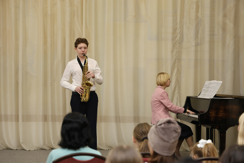 В их прекрасном исполнении прозвучали музыкальные произведения русских, советских и зарубежных композиторов на блокфлейте, фортепиано, скрипке, саксофоне, гитаре, виолончели и баяне.