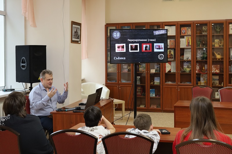 Режиссер и оператор Олег Бурдиков из Санкт-Петербурга обсудил с ребятами основные профессиональные задачи кинооператора, поделился советами как избежать ошибок при работе на съемках сюжетов.