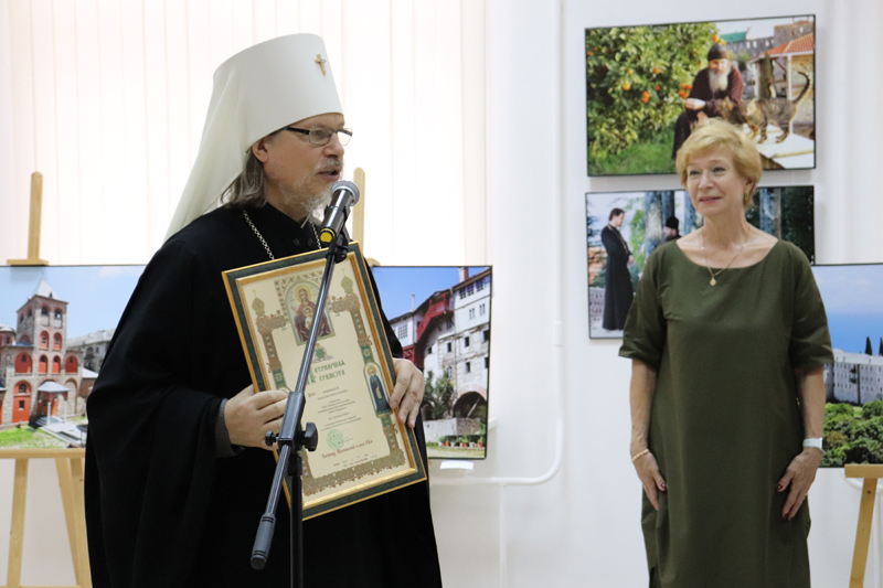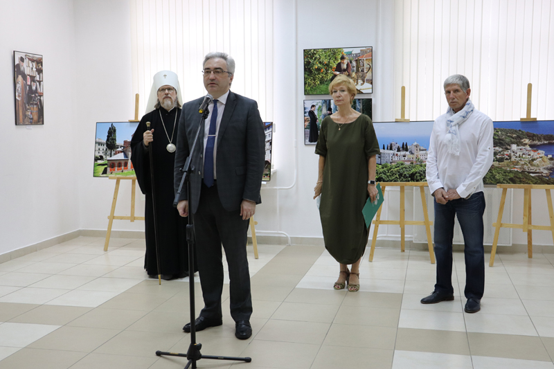 В библиотеке им. Горького открылась выставка работ фотохудожника Костаса Асимиса «Наш Афон», приуроченная к дню памяти святого равноапостольного князя Владимира и государственной памятной дате – Дню крещения Руси.