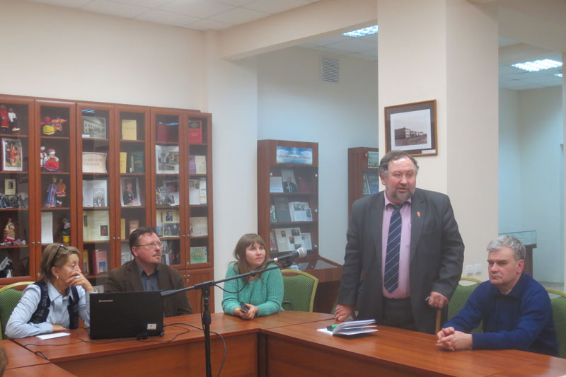 На заседании клуба краеведов, приуроченном к 40-летию со дня основания клуба рязанских археологов им. В.А. Городцова при Рязанском историко-архитектурном музее-заповеднике, выступили сотрудники отдела археологии РИАМЗ: заведующий отделом Д.А. Иванов, заведующая сектором изучения и музеефикации городища Старая Рязань Е.В. Буланкина, заведующая сектором О.А. Фатюнина и научный сотрудник В.В. Судаков.