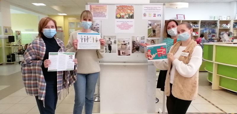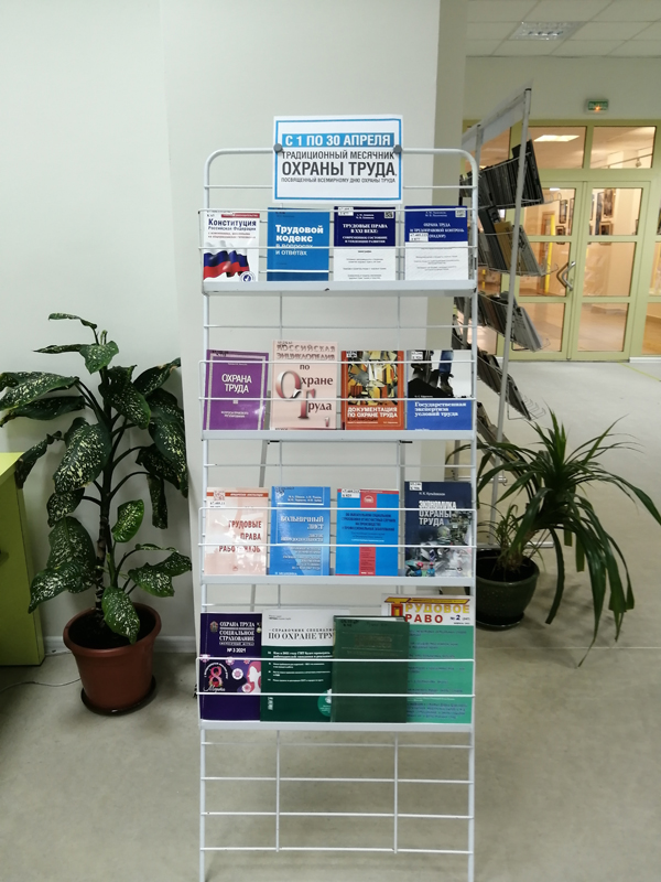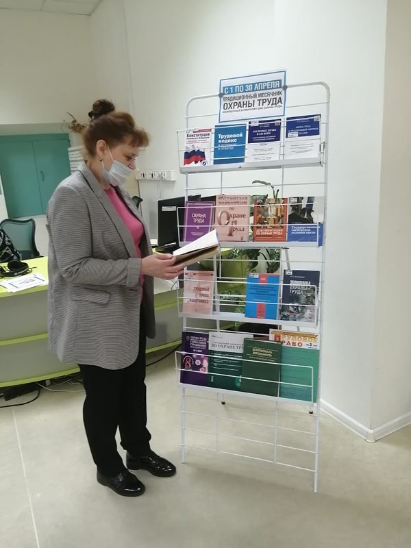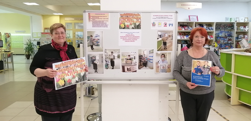 – для посетителей и сотрудников библиотеки был оформлен информационный стенд с материалами по охране труда (журналы, справочники, нормативно-правовые акты Российской Федерации); во всех структурных подразделениях размещены рекламные листовки и буклеты, посвященные празднованию Всемирного дня охраны труда;