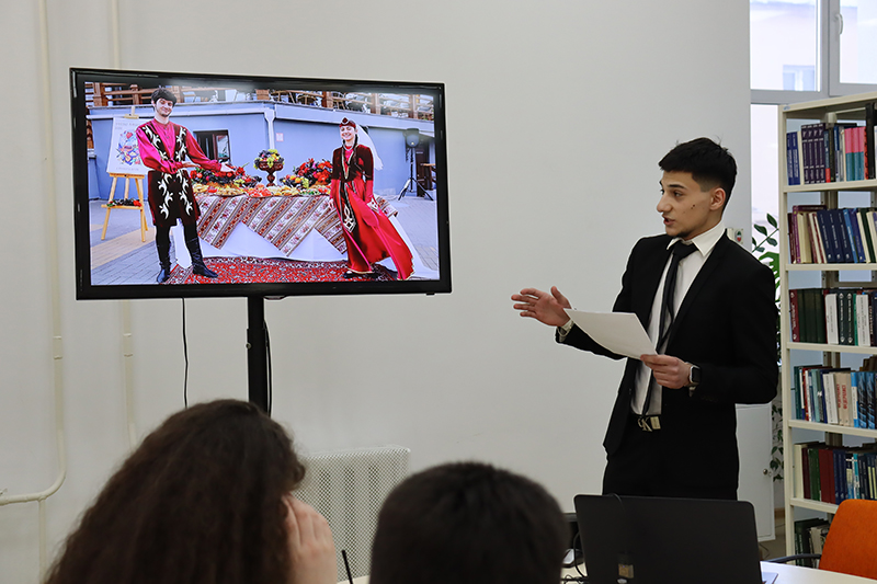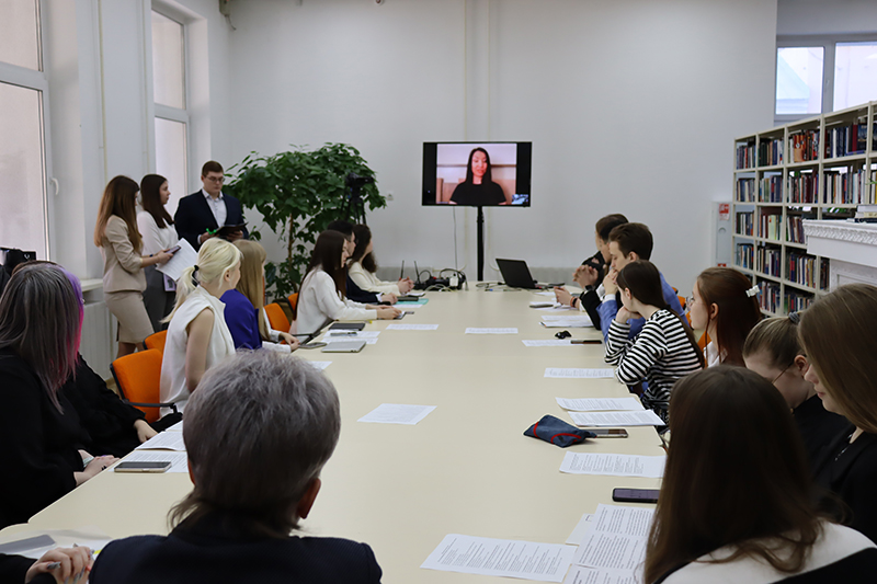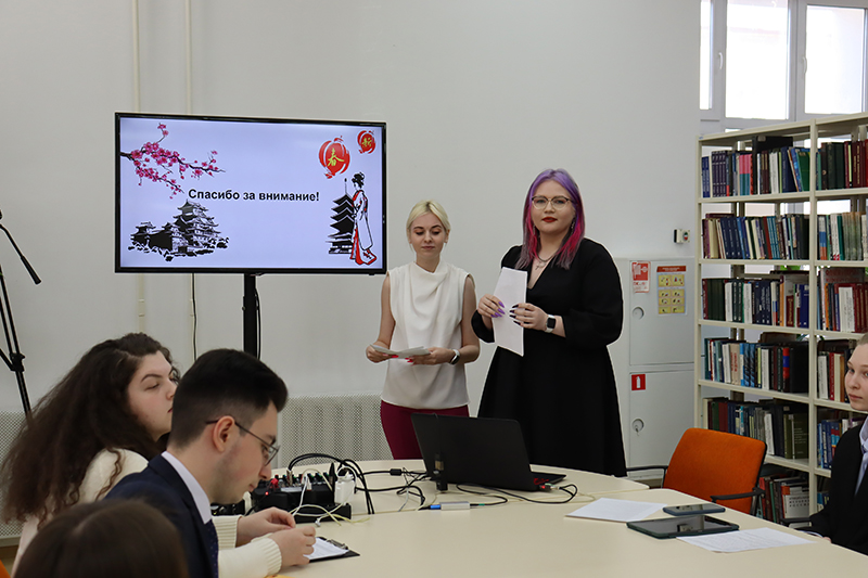В библиотеке прошло заседание научной секции «Культура международного общения: дипломатический этикет и протокол» в рамках Дней науки, организованных Институтом истории, философии и политических наук Рязанского государственного университета имени С.А. Есенина. В работе секции приняли участие студенты РГУ и представители клуба юных дипломатов «5G» гимназии №5 г. Рязани. Научными руководителями докладчиков выступили преподаватель кафедры иностранных языков ИИФПН Елизавета Андреевна Ревкова и учитель истории и обществознания гимназии №5 Людмила Михайловна Головкина.