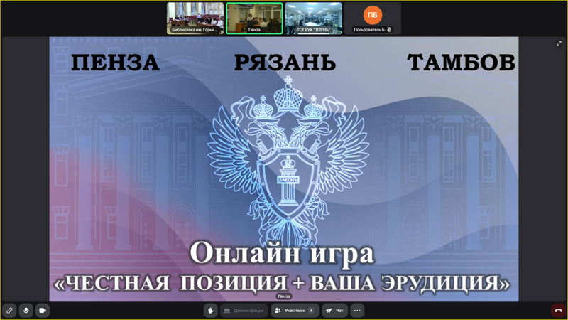 В рамках Международного дня борьбы с коррупцией в библиотеке имени Горького прошел межрегиональный онлайн-квиз «Честная позиция + ваша эрудиция», инициированный Пензенской областной библиотекой имени М.Ю. Лермонтова.