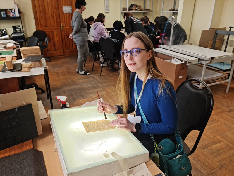Вторая группа волонтеров приняла участие в мастер-классе по реставрации книг, организованном сотрудниками Центра консервации отдела хранения основного фонда библиотеки имени Горького. Следующей точкой в их маршруте стал Музейный центр им. А. И. Солженицына.