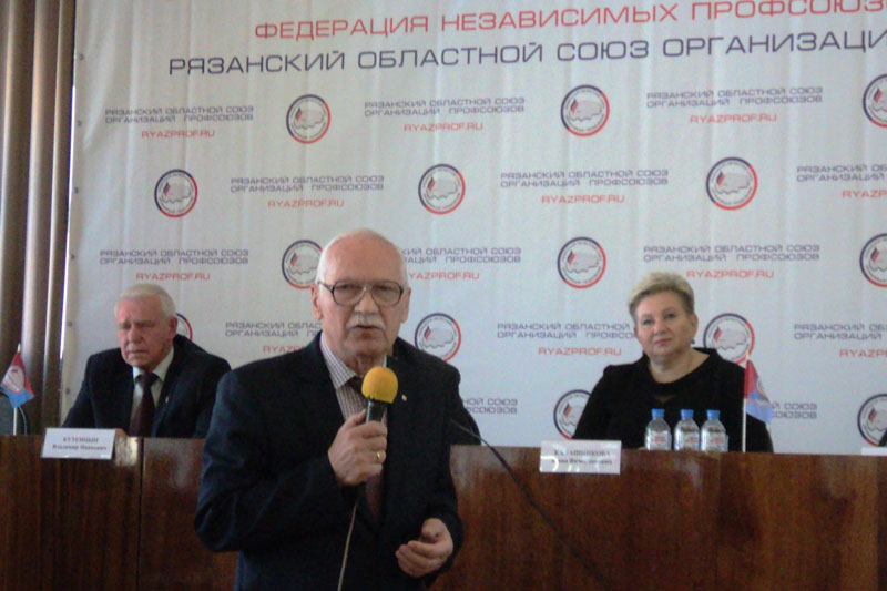 В.И. Кутенцын, координатор стороны работодателей в Рязанской областной трехсторонней комиссии по регулированию социально-трудовых отношений, председатель правления объединения работодателей «РАЭСП», обратил внимание на то, что при устройстве на работу работодатель представляет социальный пакет, в формировании которого на любом предприятии участвует профсоюз. Так же был назван один из факторов выхода из экономического кризиса региона – единство бизнеса и профсоюзов.