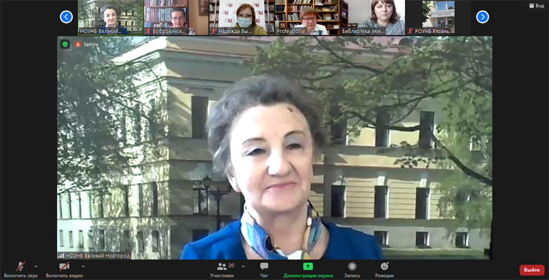 С приветственным словом к участникам обратилась заместитель директора по развитию рязанской областной библиотеки имени Горького Светлана Алексеевна Винокурова, отметив огромное значение литературного краеведения в развитии интереса к чтению литературы о родном крае и произведений писателей, связанных с ним, а также содействии формированию чувства любви к малой родине. Коллеги поделились опытом работы, представили библиотечные проекты по литературному краеведению, рассказали о новых формах работы по популяризации жизни и творчества знаменитых земляков. В завершении вебинара Людмила Алексеевна поблагодарила участников за интересные выступления о литературных историях Рязанской и Новгородской областей и пригласила к продолжению профессионального диалога на различных информационных площадках.