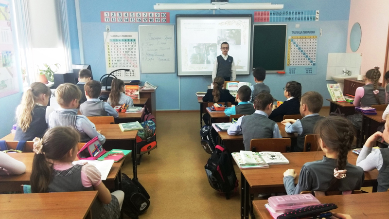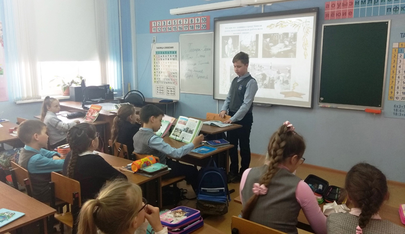 Третьеклассники школы № 73 приняли участие в уроке мужества «Минувших лет святая память», посвященном 76-летию Победы в Великой Отечественной войне 1941 – 1945 гг. С каждым годом все меньше остается участников войны, искажаются факты, принижается значимость Победы. Поэтому очень важно донести правду о войне тем, кто живет в XXI веке. Молодое поколение знает о войне по рассказам ветеранов, по книгам, фильмам и стихам.