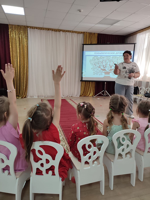 Дети узнали о православных святых Петре и Февронии Муромских, о празднике семьи, любви и верности. Просмотрели мультфильм о родословной и получили домашнее задание – составить генеалогическое древо своей семьи. Ребята с большим удовольствием рассказывали о традициях в своей семье, отгадывали загадки и ребусы. Малыши поучаствовали в пантомиме сказок «Репка» и «Три медведя», осмысливая характеры персонажей. Тема семейных ценностей оказалась доступной и понятной для дошколят, атмосфера мероприятия была радостной, наполненной смехом и добрыми пожеланиями. В конце игры дети получили сладкие призы.