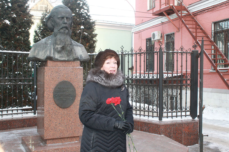 Утро 26 января выдалось морозным и ветреным, но погода не помешала сотрудникам библиотеки им. Горького и старшеклассникам школы №8 собраться у памятника М.Е. Салтыкову-Щедрину.