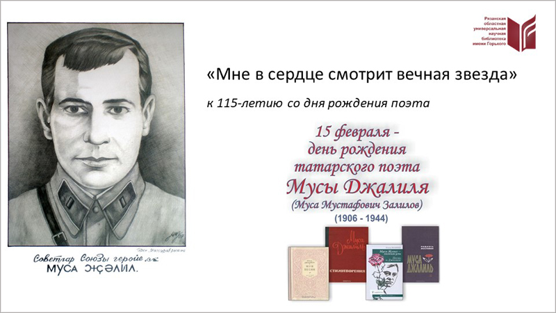 Предлагаем вам познакомиться с жизнью известного татарского поэта Мусы Джалиля, узнать о его детстве, школьных годах и боевой комсомольской юности, послушать стихи в исполнении членов областной и городской национально-культурных автономий татар.