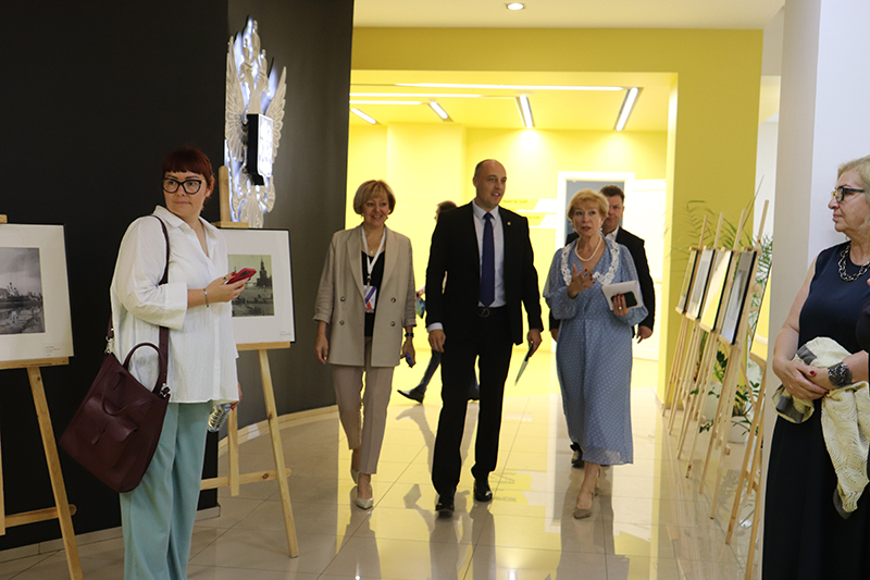 Встреча началась с открытия выставочного проекта «Многоликая Россия» (фотографий периода конца XIX – начала XX веков). С приветственным словом к присутствующим обратилась исполняющая обязанности министра культуры Рязанской области Марина Кауркина. Директор Рязанской областной библиотеки имени Горького, председатель Общественной палаты Рязанской области, заслуженный работник культуры РФ Наталья Гришина отметила, что проект «Многоликая Россия» отличается жанровым разнообразием уникальных фотоматериалов, которые позволяют соприкоснуться с историей и жизнью России прошедших столетий. Генеральный директор «Государственного музейно-выставочного центра РОСФОТО» Захар Коловский пояснил, что в экспозиции представлены работы известных мастеров фотографического искусства второй половины XIX века: Ивана Барщевского, ателье «Буассона и Эгглер», Максима Дмитриева, Дмитрия Ермакова, Вильяма Каррика, Алфреда Лоренса, графа Ивана Ностица, Якова Лейцингера. Захар Коловский отметил, что представленные работы с исторической точностью и художественной выразительностью передают разнообразие жизненного уклада населения российского государства во второй половине XIX века.