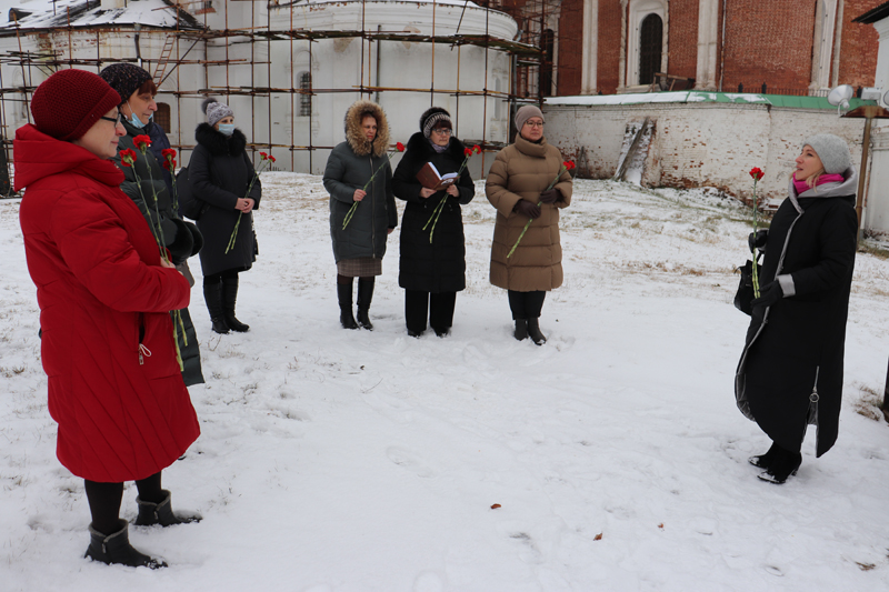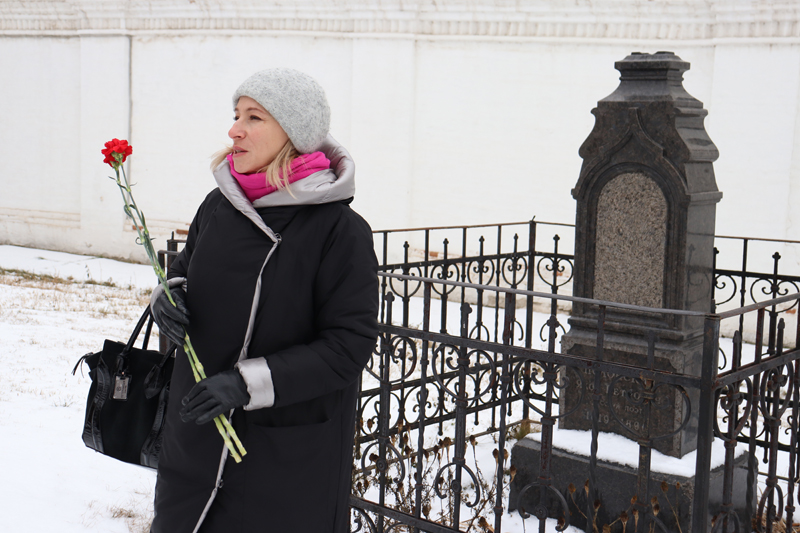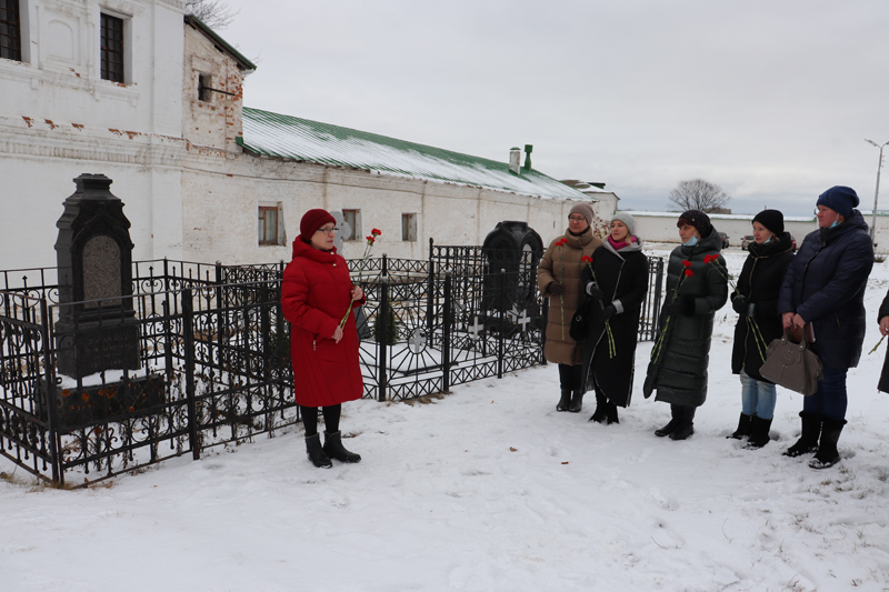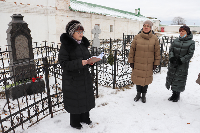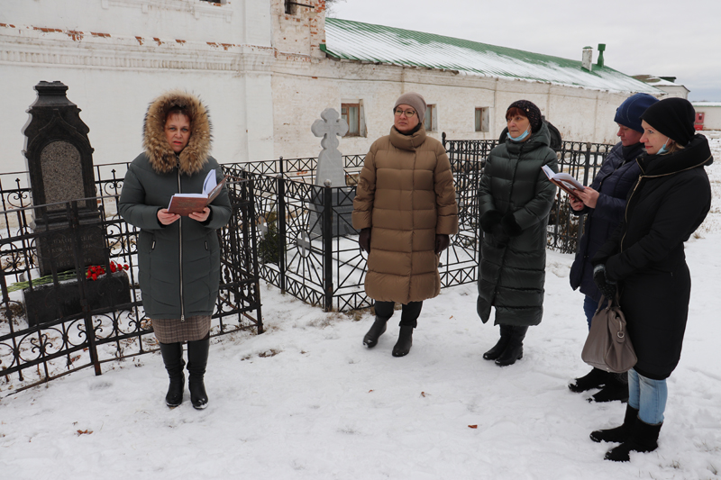 Сотрудники библиотеки прочитали стихи Якова Полонского и возложили на могилу красные гвоздики.