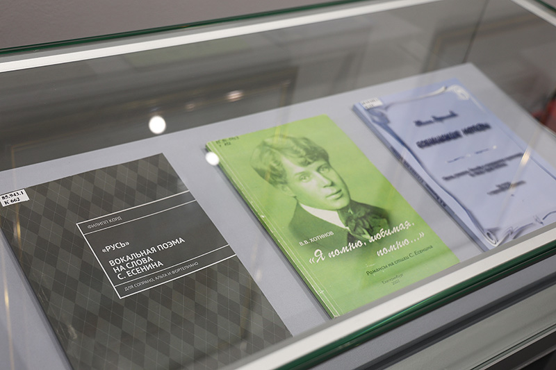 Куратор выставки, ведущий научный сотрудник краеведческого информационного отдела РОУНБ имени Горького Марина Алексеевна Абрамова отметила, что на выставке представлены многочисленные издания с произведениями С. А. Есенина из фондов библиотеки. Особый интерес вызывают нотные сборники современных композиторов, создавших музыкальные произведения на стихи поэта. Связующим звеном, объединившим все части экспозиции, стали авторские куклы «Сергей Есенин. Несказанное, синее, нежное…» и «Мать и дитя» рязанского мастера декоративно-прикладного искусства Светланы Бирюковой. Мастер работает с различными материалами, включая традиционные папье-маше, ткань, шерсть, глину, а также современные полимерные массы и фоамиран. Работы Светланы Бирюковой неоднократно отмечались наградами на всероссийских и международных конкурсах, в частности на Международной выставке «Кукла года» в Санкт-Петербурге, где в 2020 году она получила почётное звание «Лучший мастер Рязанской области».