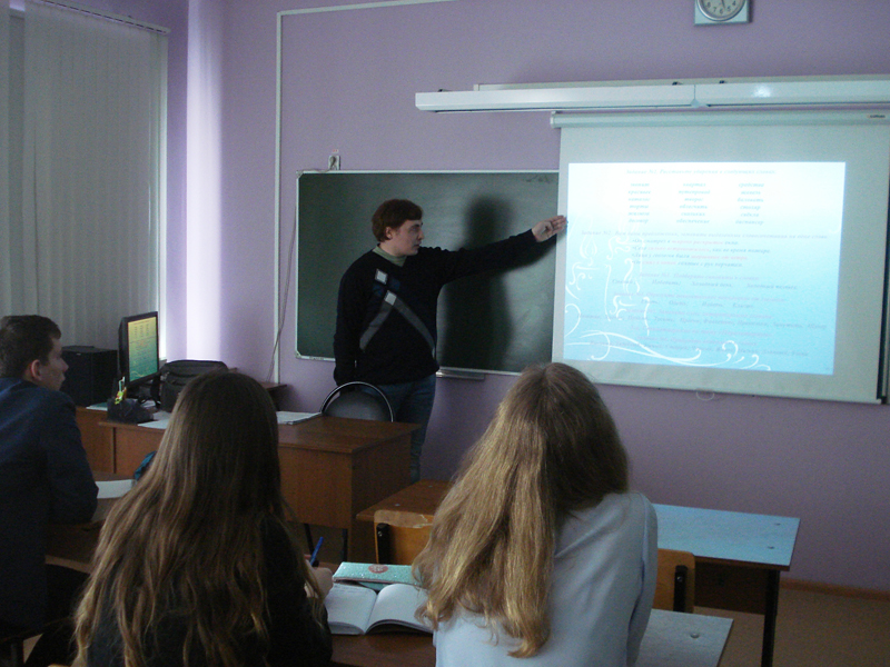 Школьники с интересом приняли участие в интерактивной части встречи, которая содержала задания на правильную расстановку ударений, подбор синонимов и антонимов, замену жаргонных слов литературными.