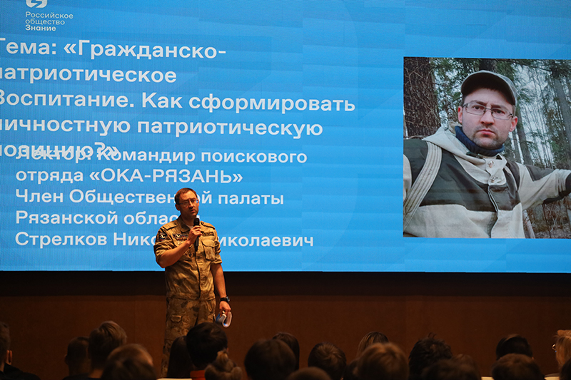 Командир поискового отряда «Ока-Рязань», член общественной палаты Рязанской области Николай Николаевич Стрелков провел беседу с молодежью и рассказал о деятельности организации, которая на протяжении многих лет занимается восстановлением исторической справедливости и увековечиванием памяти воинов, погибших в годы Великой Отечественной войны. Отряд не только осуществляет поисковые работы, но и активно ведет образовательную деятельность, проводя встречи в школах и университетах, рассказывая молодежи о подвиге советских солдат и значении памяти о них.