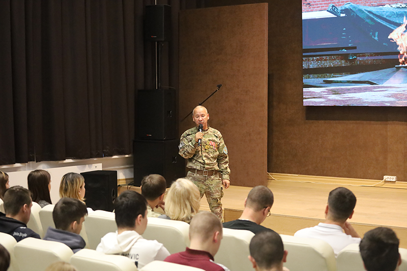 На мероприятие был приглашен специальный гость, боец поискового отряда «Железные витязи», участник Специальной Военной Операции в составе батальона имени генерала армии Василия Филипповича Маргелова Валерий Евгеньевич Цхай.