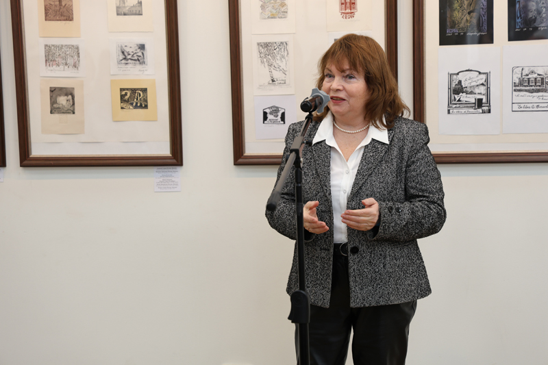 Заслуженный работник культуры РФ, президент Международного союза книголюбов, директор Музея экслибриса и миниатюрной книги Людмила Владимировна Шустрова подробно рассказала о Международном конкурсе экслибрисов, в котором приняли участие 152 профессиональных художника из 29 регионов России, а также из семи стран ближнего и дальнего зарубежья: Аргентина, Беларусь, Италия, Казахстан, Китай, Турция, Объединенные Арабские Эмираты. В своем выступлении Людмила Владимировна назвала имена победителей.
