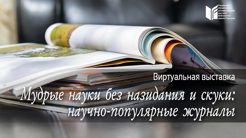 Виртуальная выставка «Мудрые науки без назидания и скуки: научно-популярные журналы» знакомит с изданиями, поступающими в настоящее время в фонд Рязанской областной универсальной научной библиотеки им. Горького. С этими журналами можно ознакомиться в зале периодических изданий.