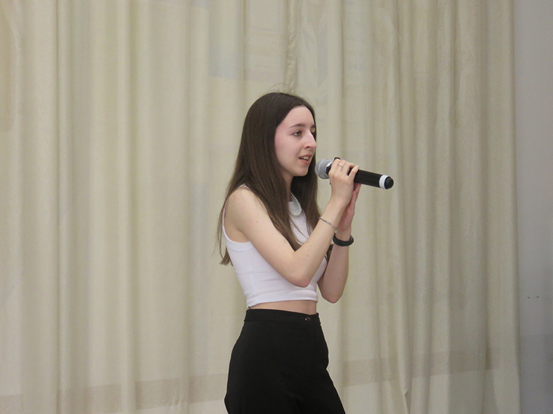 С глубоким драматизмом, на высоком эмоциональном подъеме руководитель школы Лала Галактионова исполнила композиции «Молитва» из кинофильма «Любовь под прицелом» и «Воздушный поцелуй». Финальной точкой программы стало коллективное исполнение участниками концерта легендарной «Катюши», с удовольствием подхваченной залом.