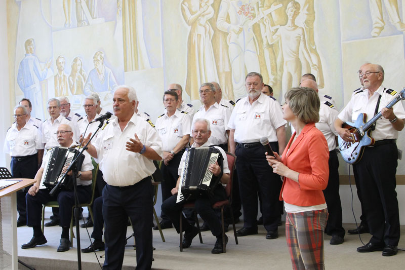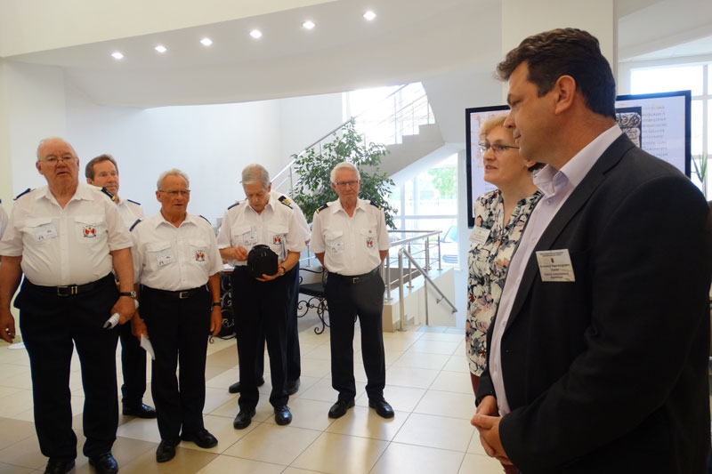 Руководитель Шанти-хора Экхард Лехерман приветствовал всех гостей от лица обербургомистра города Мюнстера Маркуса Леве и председателя Общества содействия партнерским отношениям «Мюнстер-Рязань» Биргит Люкемайер. Господин Лехерман отметил неоценимый вклад библиотеки в укрепление партнерских и культурных связей между нашими регионами.