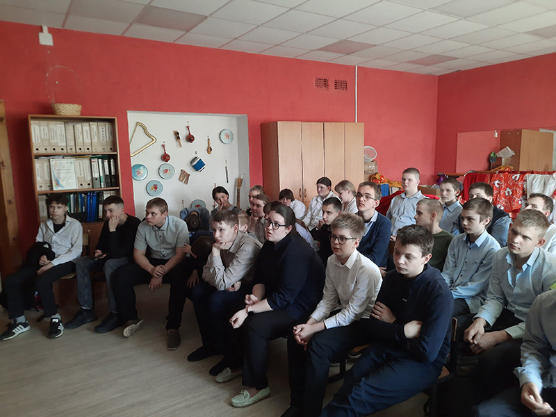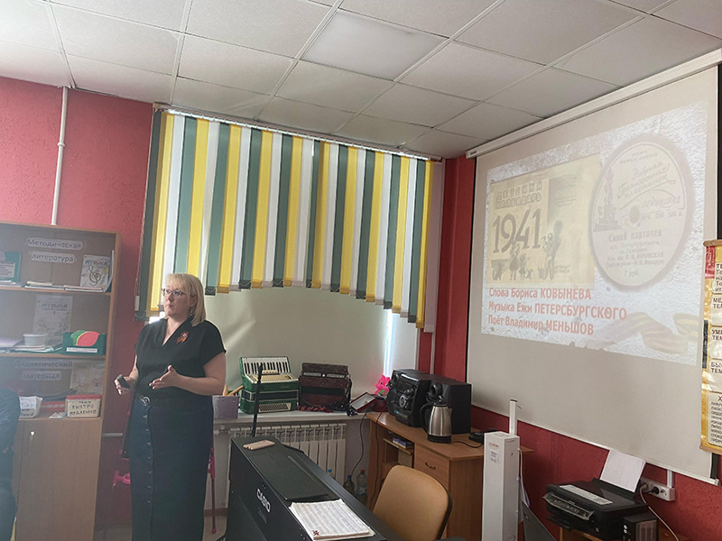Ребята познакомились с историческими фактами тех тяжёлых военных лет, когда вся страна вместе с деятелями искусства встала на борьбу с врагом. Большой интерес вызвал рассказ об истории создания песен, появившихся в годы войны и получивших наибольшую популярность как на фронте, так и в тылу.