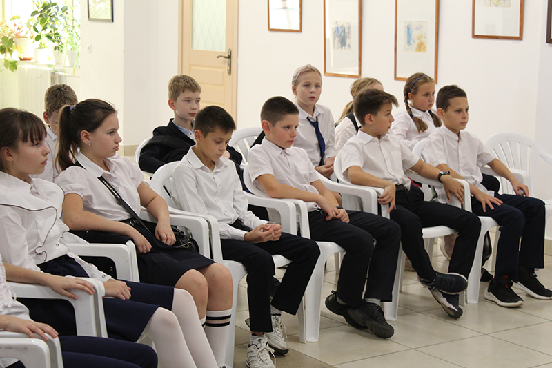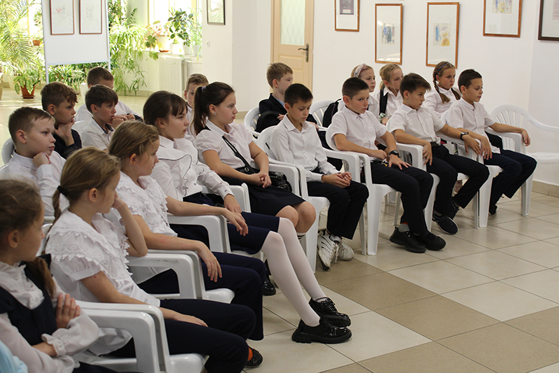 В рамках работы выставки Марианна Щербакова провела для учеников 36 школы г. Рязани «Музыкальную гостиную». Юные гости библиотеки познакомились с книгой Геннадия Цыферова «Тайна запечного сверчка» о детстве Вольфганга Амадея Моцарта.
