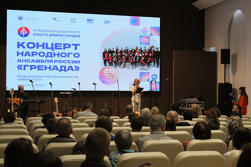 В рамках культурной программы VI Международного форума древних городов в библиотеке имени Горького состоялся концерт Народного ансамбля России «Гренада» – Лауреата ХI и ХII Всемирных фестивалей в Гаване и Москве, обладателя международных наград и премий.