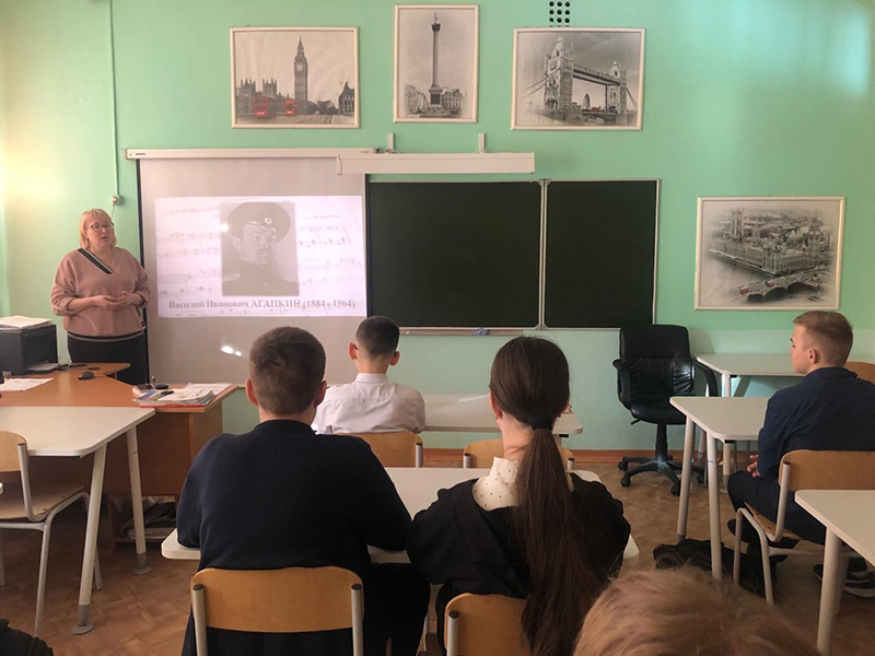 Необычный урок прошёл в 36 школе Рязани у учеников 6 класса. Сотрудники Центра литературы по искусству рассказали учащимся о композиторе Василии Ивановиче Агапкине и его знаменитом марше «Прощание славянки». Поводом для встречи стал юбилей автора великого произведения, 3 февраля исполнилось 140 лет со дня его рождения.