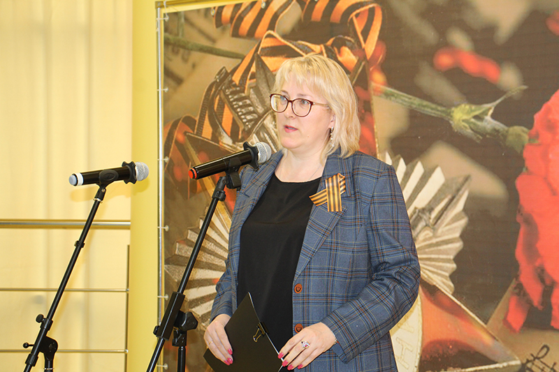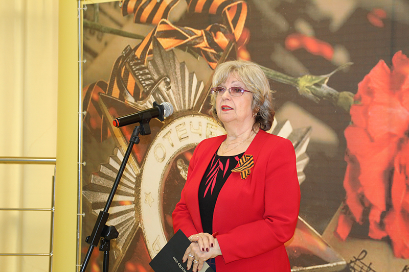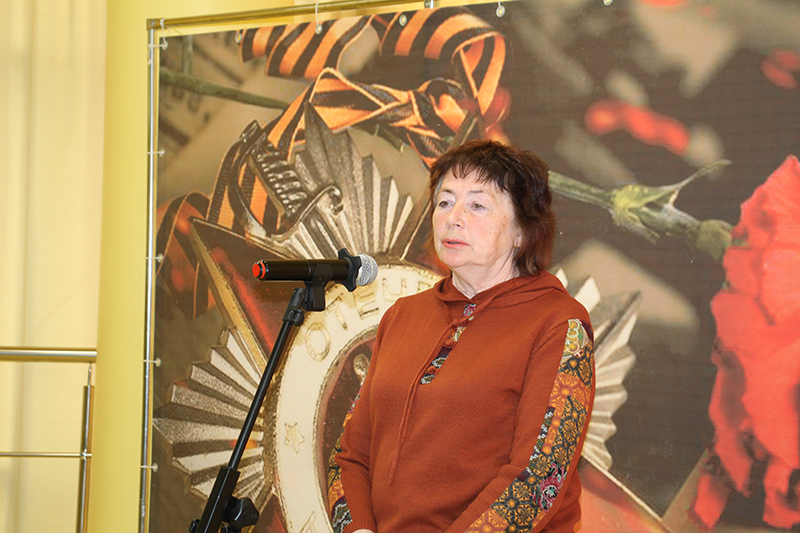 Председатель Общественной палаты Рязанской области, председатель регионального отделения Союза женщин России, директор библиотеки Наталья Николаевна Гришина поздравила всех собравшихся с великим праздником – Днем Победы. Наталья Николаевна отметила, что трагические события военных лет оставили неизгладимый след в истории нашей страны, они нашли отражение в литературе, живописи, музыке. Сегодняшняя встреча дает возможность вспомнить героический подвиг наших отцов и дедов, в полной мере ощутить радость долгожданной Победы.
