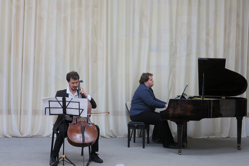 Прекрасно сыграли сонату для виолончели и фортепиано Д. Кабалевского преподаватели детской музыкальной школы имени М.Л. Таривердиева города Москвы Александр Блинков и Ратмир Мусабаев.