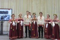 В исполнении Образцовых коллективов Рязанской области фольклорных ансамблей «Дарница» (руководитель Е.Н. Зотова) и «Пересвет» (руководитель В.Н. Мельников) прозвучали фольклорные песни времен Великой Отечественной войны. Всеми любимые произведения «Темная ночь», «На Кургане» зал пел вместе со студентами Рязанского музыкального колледжа имени Г. и А. Пироговых.