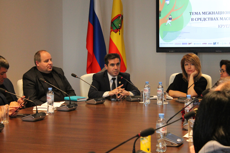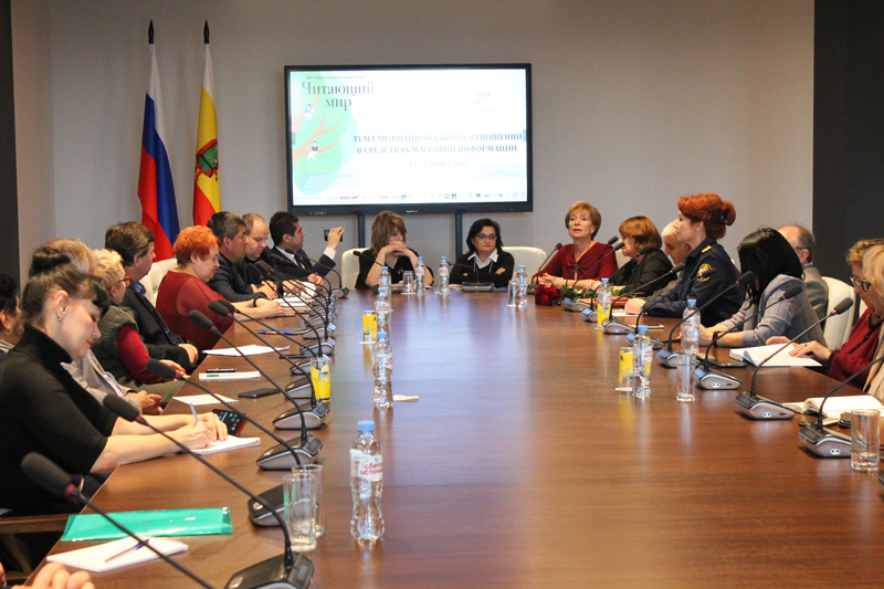 В рамках Фестиваля национальной книги «Читающий мир» в библиотеке состоялся круглый стол «Тема межнациональных отношений в СМИ».