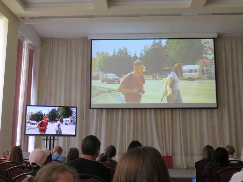 Программа продолжилась своеобразным отчетом о работе, проделанной за прошедший год. А работы сделано было очень много. Фильмы, социальные ролики, которые снимают ребята, каждый раз занимали призовые места на всех фестивалях и конкурсах, в которых они участвовали.