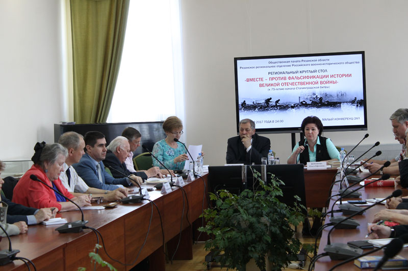 В рамках заседания обсуждалась актуальные проблемы - попытки переписать историю, исказить факты о Великой Отечественной войне, принизить роль советского народа в победе над фашизмом. Так, по словам члена Общественной палаты РФ, заместителя секретаря Общественной палаты Рязанской области, профессора РГУ им. С.А. Есенина О. Е. Вороновой, в последнее время участились факты фальсификации истории.