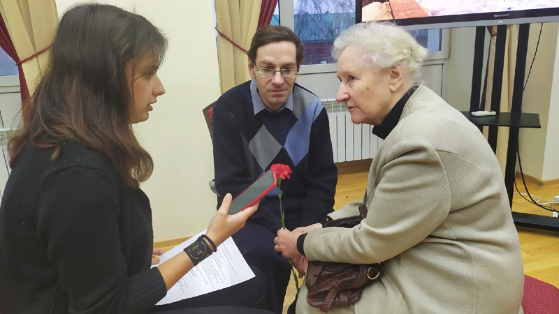 В ходе встречи волонтеры провели интервьюирование «детей войны», узнали, сколько лет им было, когда началась война, в какие игры они играли, как проходили занятия в школе, какими продуктами питались, какие самые сильные чувства и воспоминания из военного детства до сих пор сохраняются в памяти. «Эта акция важна как для старшего поколения, так и для молодых ребят, чтобы они могли в полной мере оценить то детство, которое есть сейчас у них», – отметила инициатор акции, председатель попечительского совета Фонда «Мангуст» Галина Артемова.