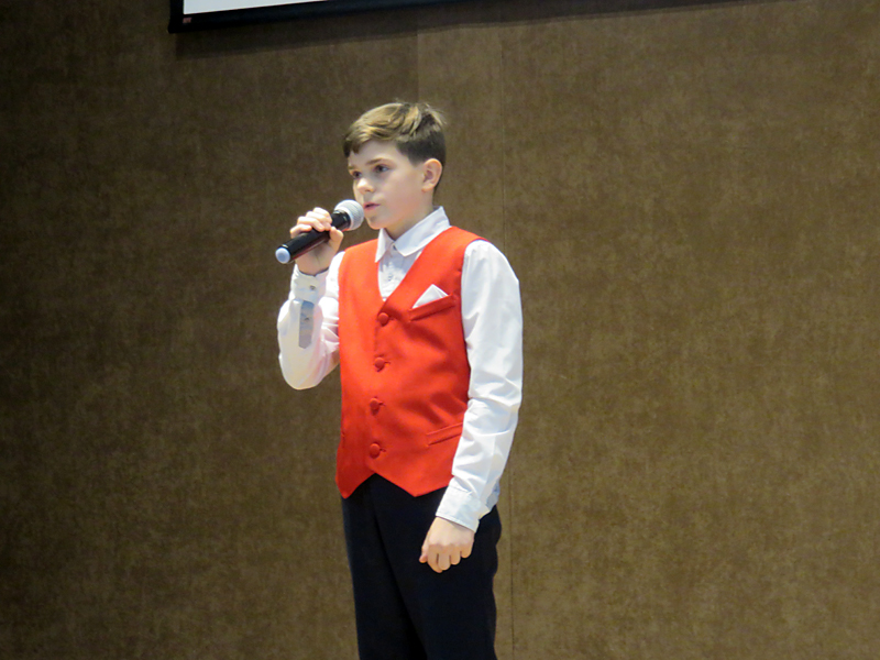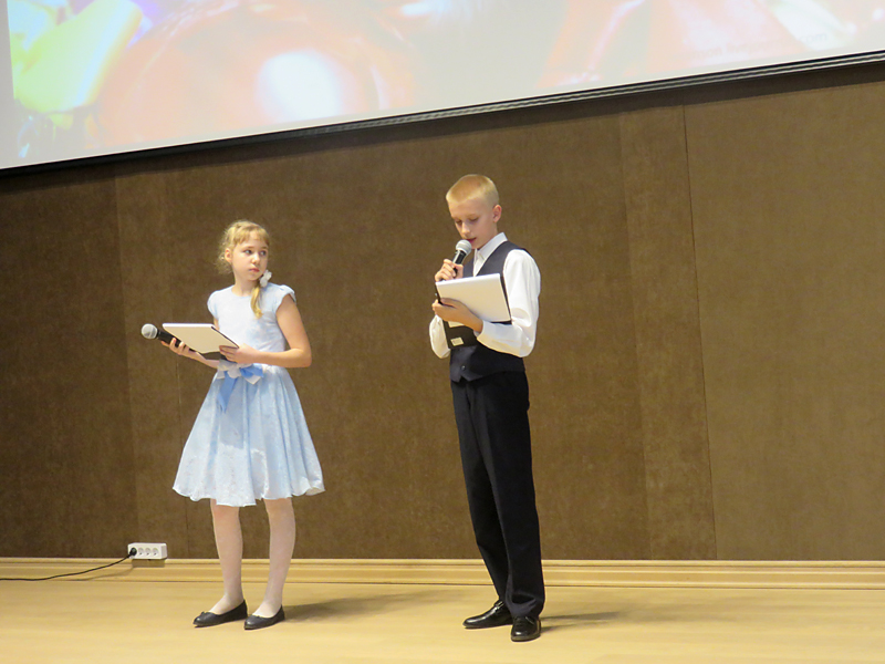 Вели программу учащиеся школы Екатерина Пасько и Данила Лученок. Поэтическая композиция новогодней и рождественской тематики служила прекрасной подводкой к музыкальным номерам, содержала множество замечательных поздравлений и пожеланий. Часть из них прозвучала в исполнении участников хора.