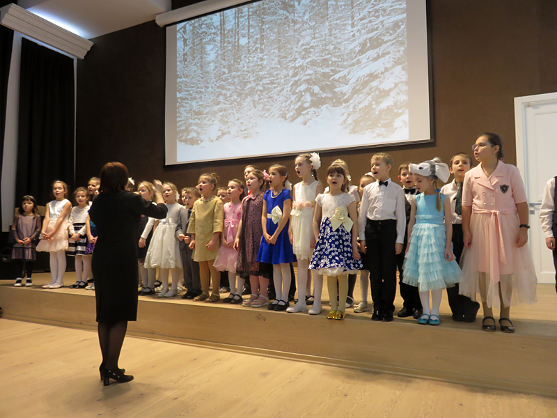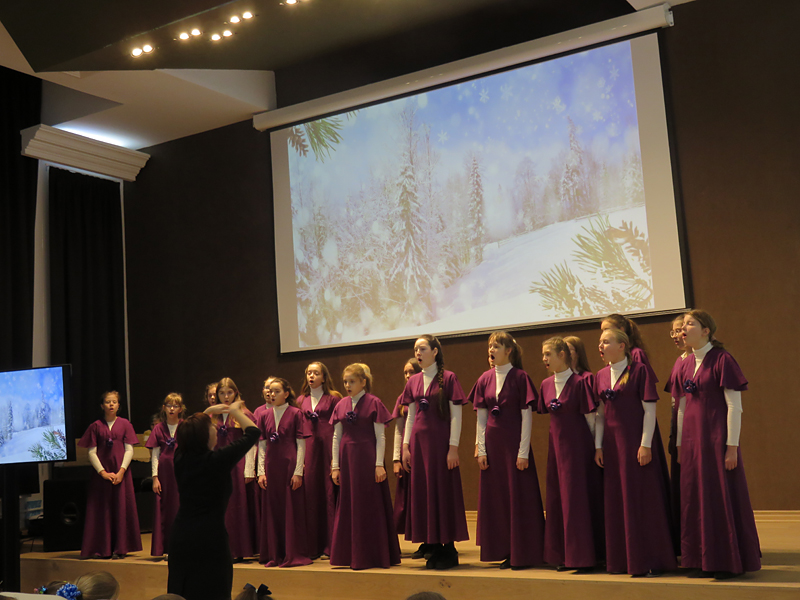 Прозвучали песни: «Радуйся, ликуй, Вифлеем» С. Смольянинова (хор учащихся 1-го класса), «Санктус» Ф. Шуберта, «Музыка с небес» Е. Будкиной (хор старших классов «Элегия), «Новогодняя детская песенка» М. Дунаевского (хор учащихся 1-го класса), «Пастушья песенка» Л. Бетховена, «Хрупкий снег ложится на деревья» Е. Прядильниковой (хор младших классов «Капель») и другие. Порадовали публику и солисты. Карина Айрапетян исполнила «Цветные сны» М. Дунаевского, а Глеб Белянский – знаменитую неаполитанскую песню «Санта Лючия».