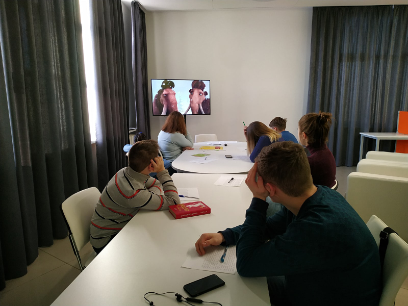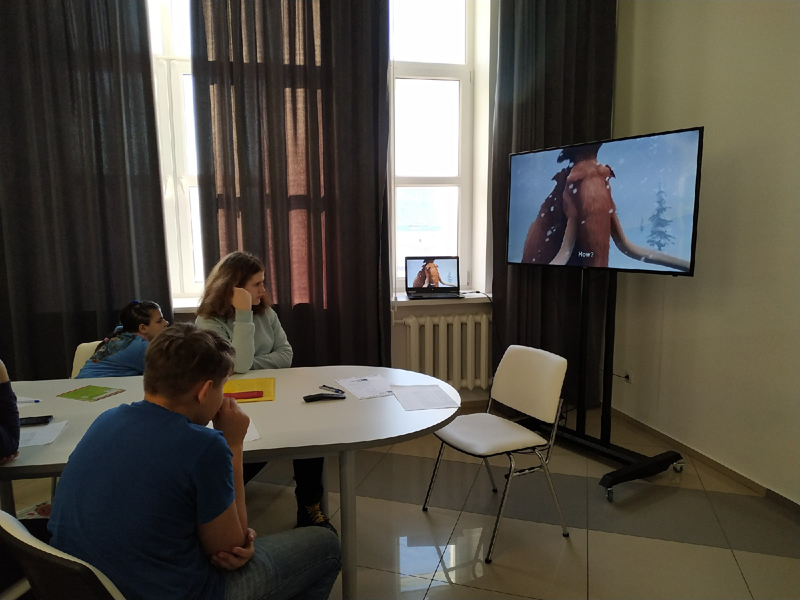 В новогодние праздники учащиеся студии английского языка библиотеки Горького узнали, как отметило Рождество одно семейство мамонтов. Дети посмотрели в оригинале и с английскими субтитрами анимационный фильм «Ледниковый период: Гигантское Рождество» о том, как ленивец Сид чуть было не попал в черный список Санта-Клауса. Вместе с главным героем и его друзьями ребята совершили путешествие на Северный полюс, чтобы спасти не только ленивца, но и сам праздник.