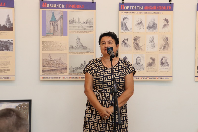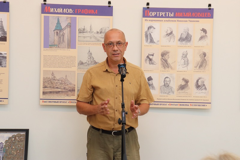 Начальник Государственной инспекции по охране объектов культурного наследия Рязанской области Михаил Михайлович Дорофеев поблагодарил библиотеку за поддержку общественно значимого начинания краеведов, и подчеркнул, что история старинного рязанского города Михайлова – одна из интереснейших страниц в истории всей области, и в ней велика роль художников, педагогов, краеведов братьев Ушаковых.