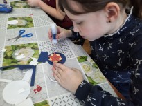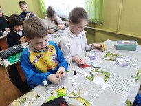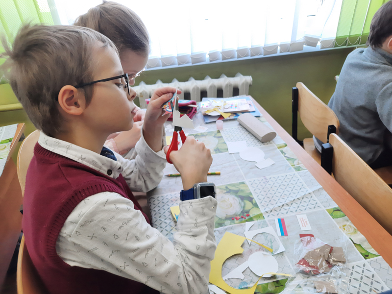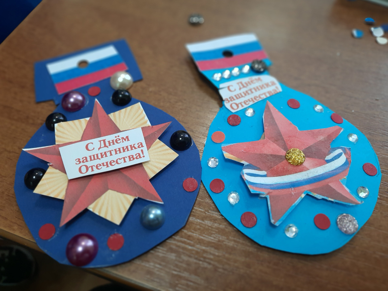 В начале мероприятия библиотекари рассказали ребятам, почему 23 февраля мы поздравляем всех защитников нашей Родины, какая символика используется для работ, посвященных отечественной армии. Затем каждый участник мастер-класса получил необходимые материалы и приступил к работе. На этот раз традиционную открытку со словами поздравления решено было заменить на сувенирную медаль, где главным элементом стала импровизированная звезда героя и поздравительная надпись с российским флагом.
